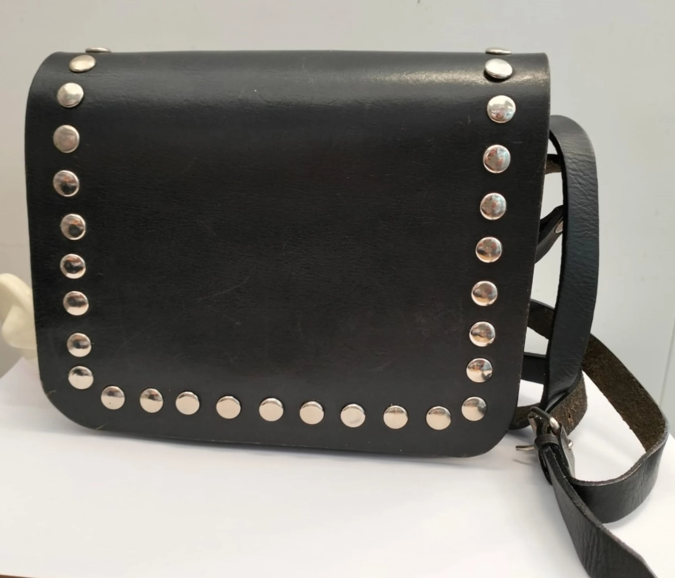 Borsetta in cuoio nera con borchie e tracollina
