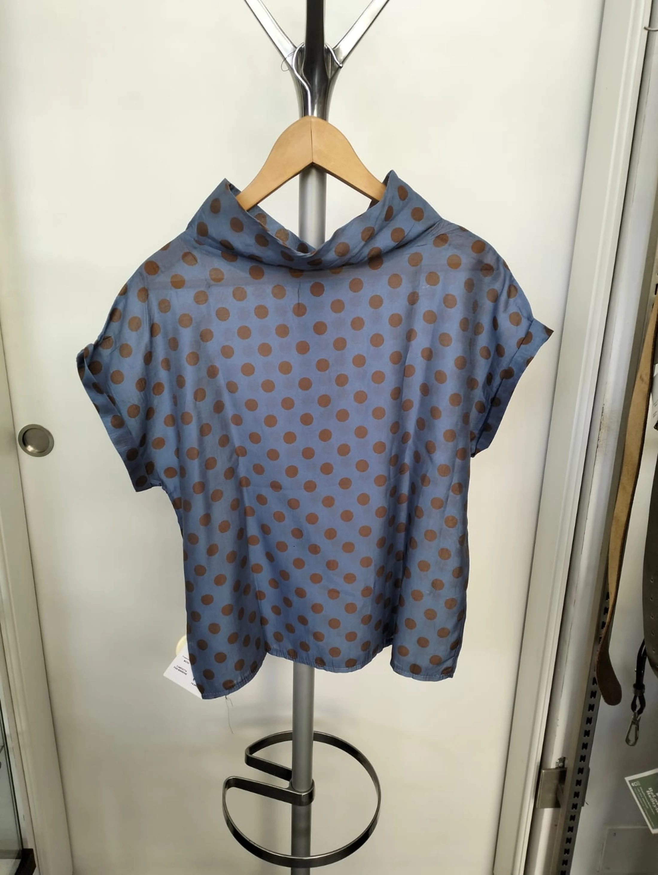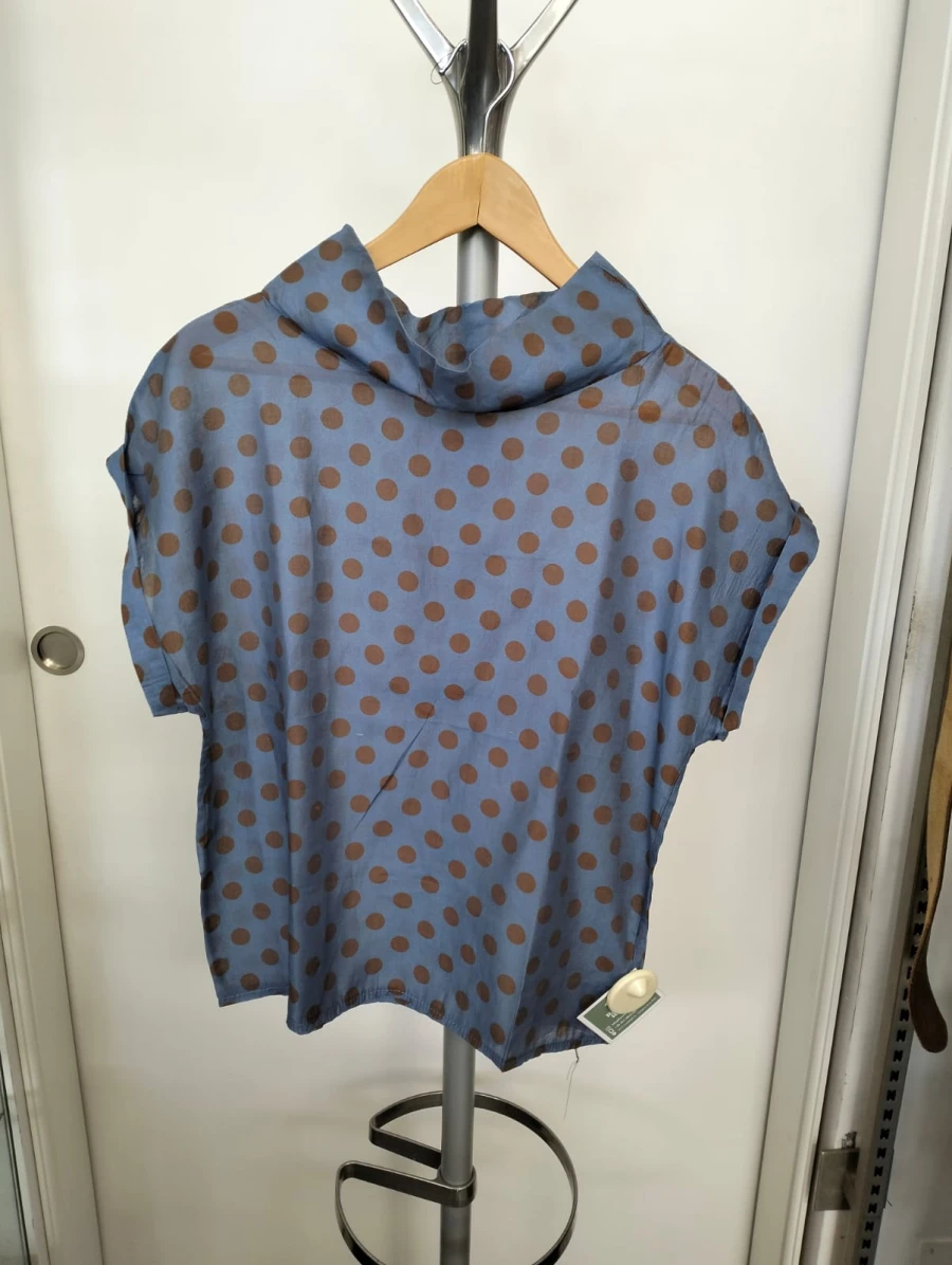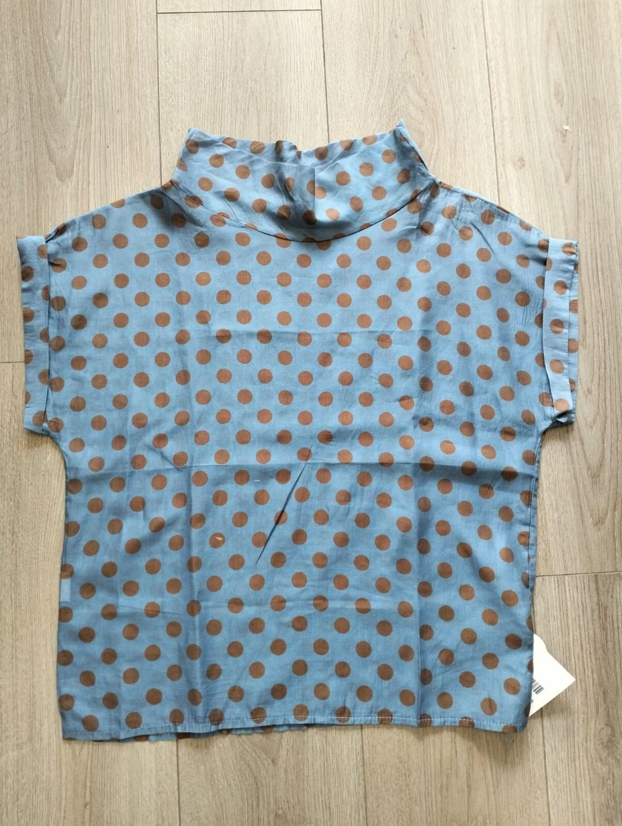 Camicetta carta da zucchero con pois marroni a maniche corte
