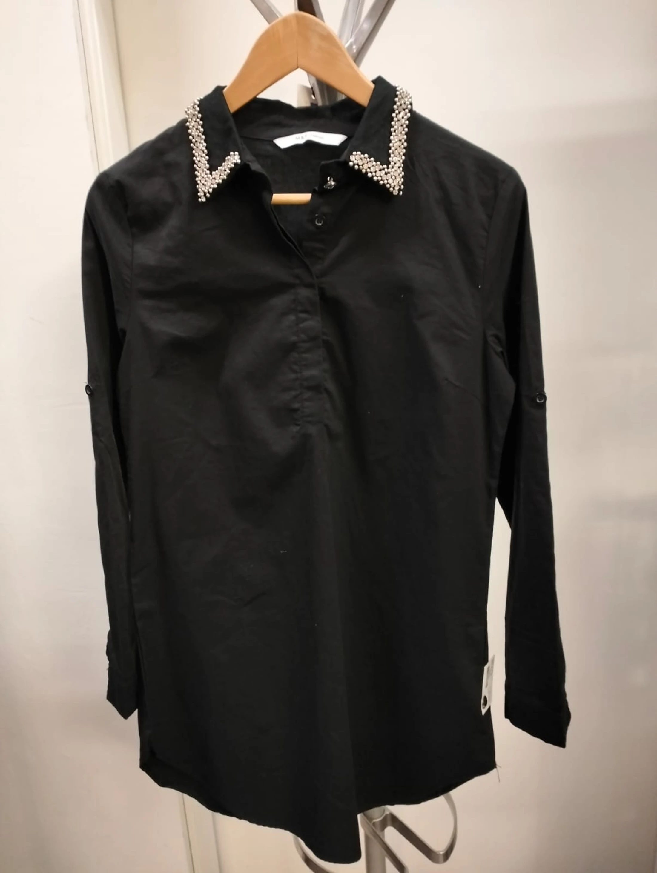 Camicia nera con colletto con inserti in strass