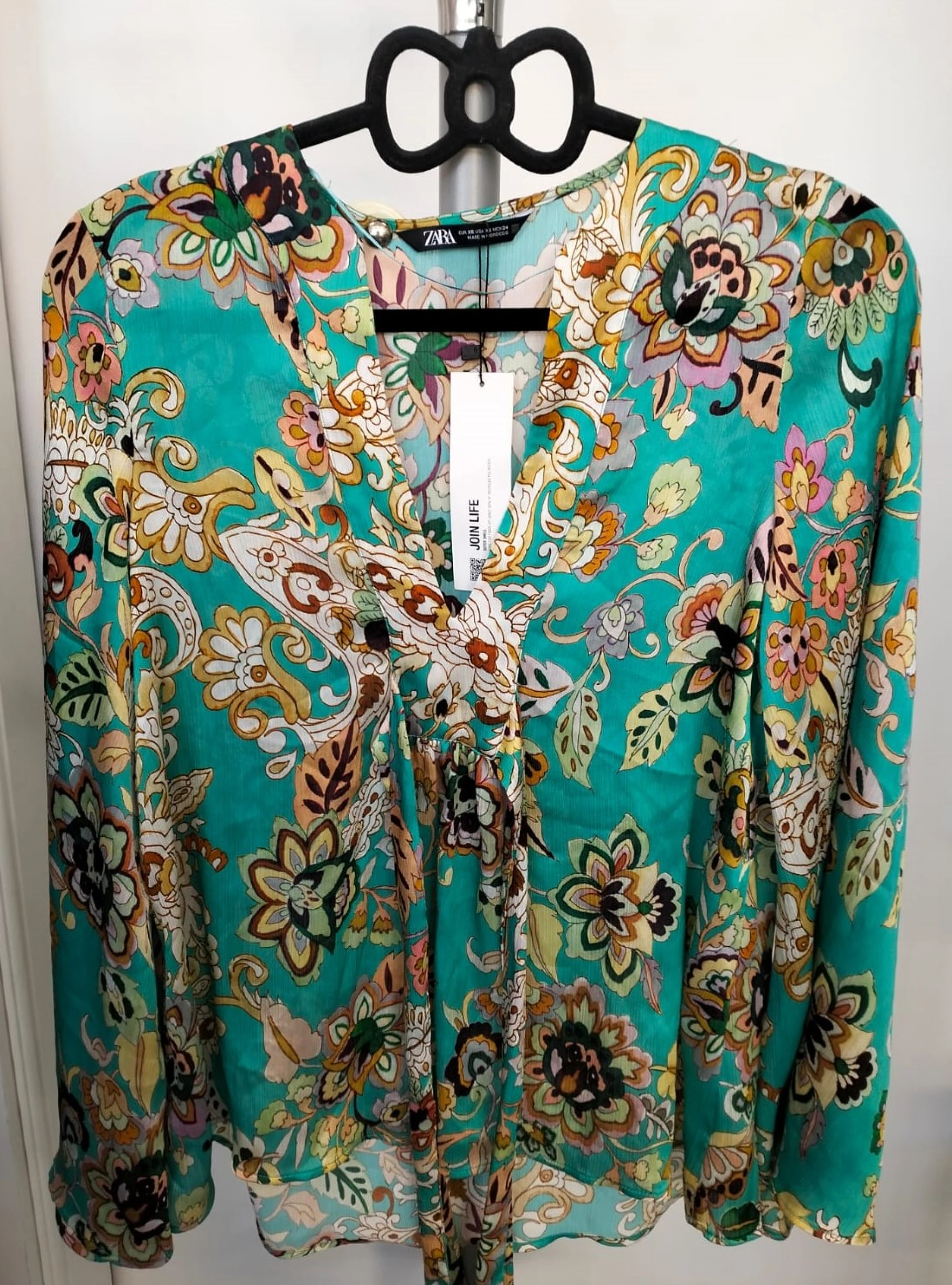 Camicia Zara verde con fantasia a fiori