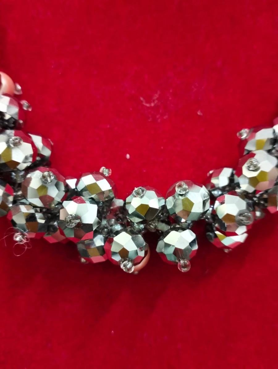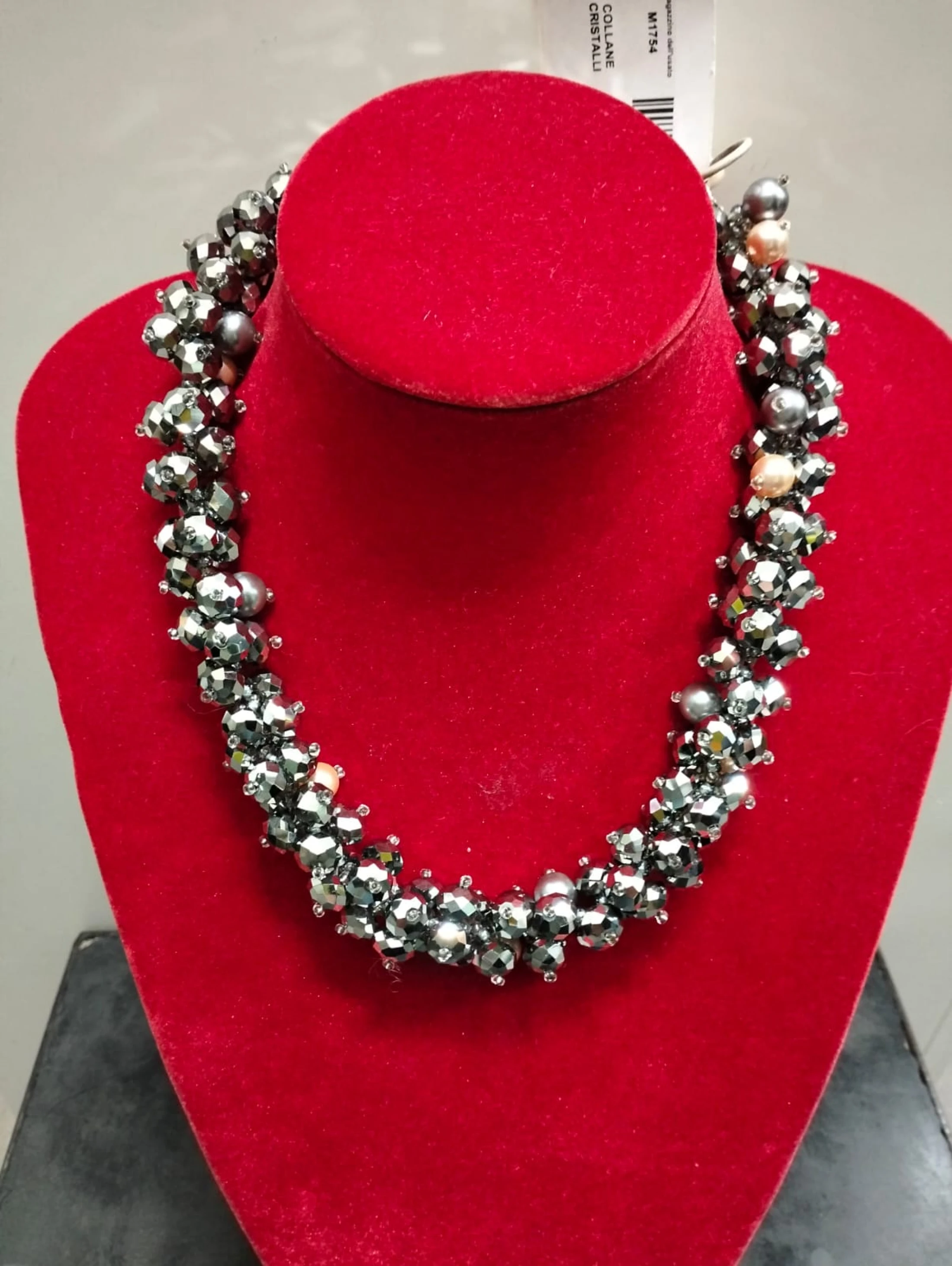Collana in cristalli grigi con perle