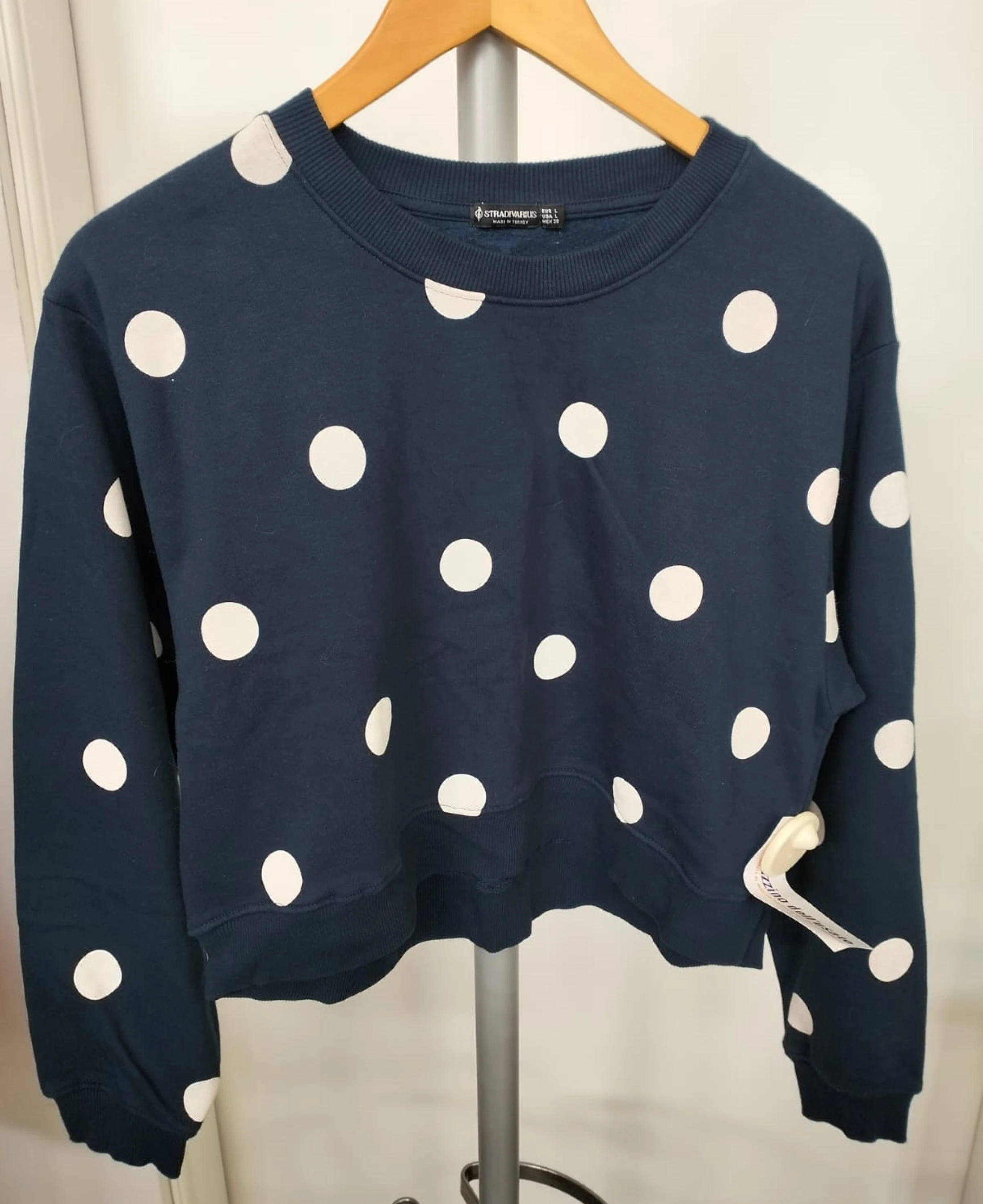 Felpa blu con pois bianchi