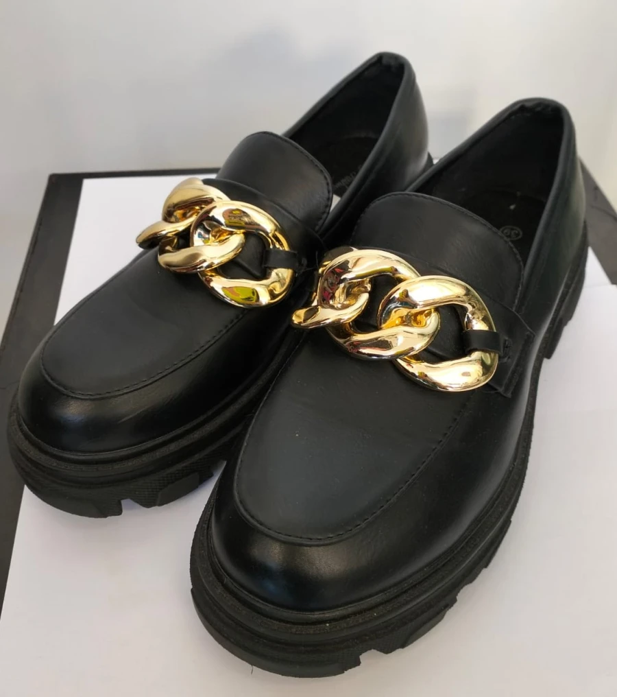 Mocassini neri con catena dorata
