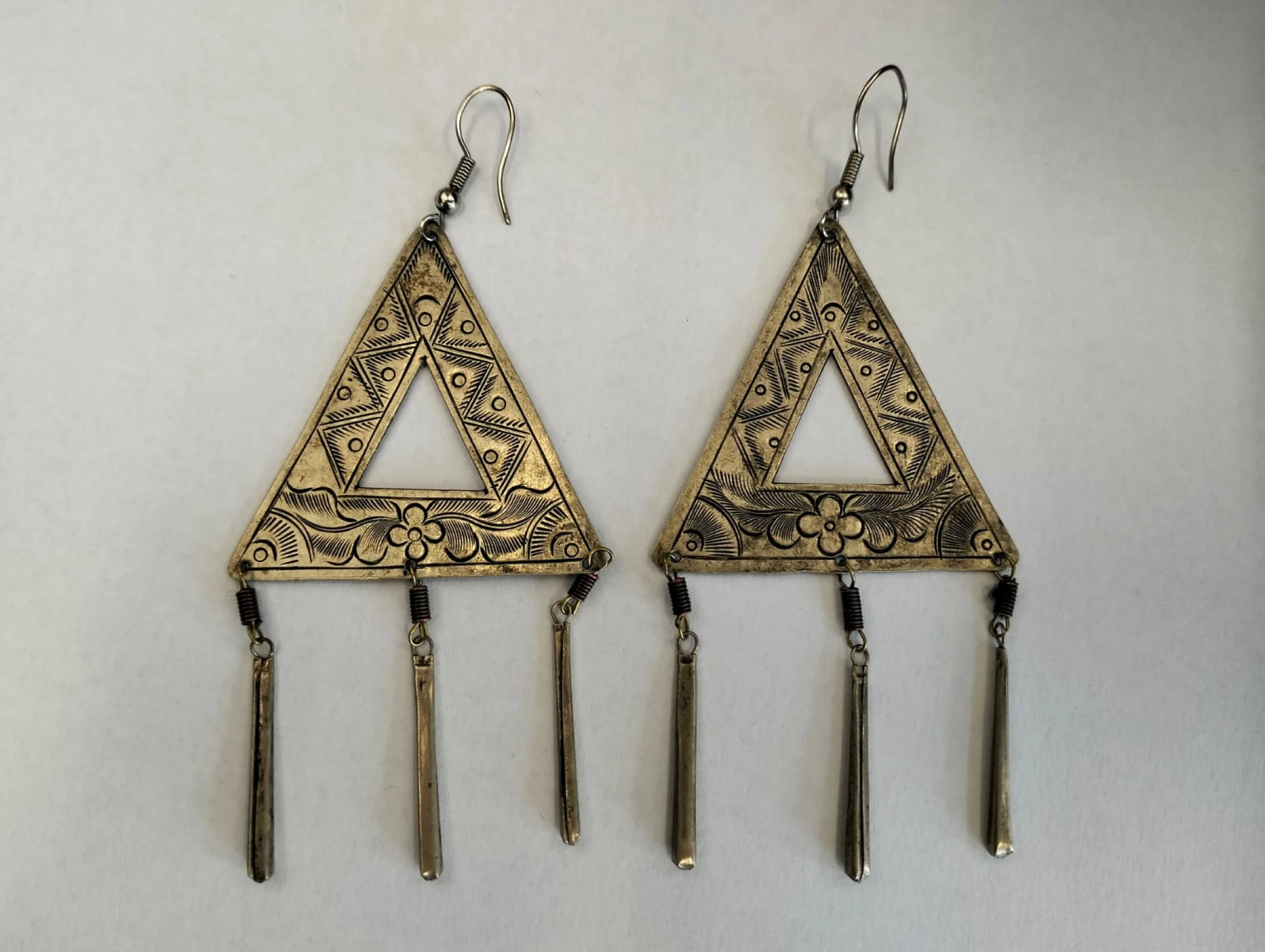 Orecchini pendenti a forma di triangolo con incisioni