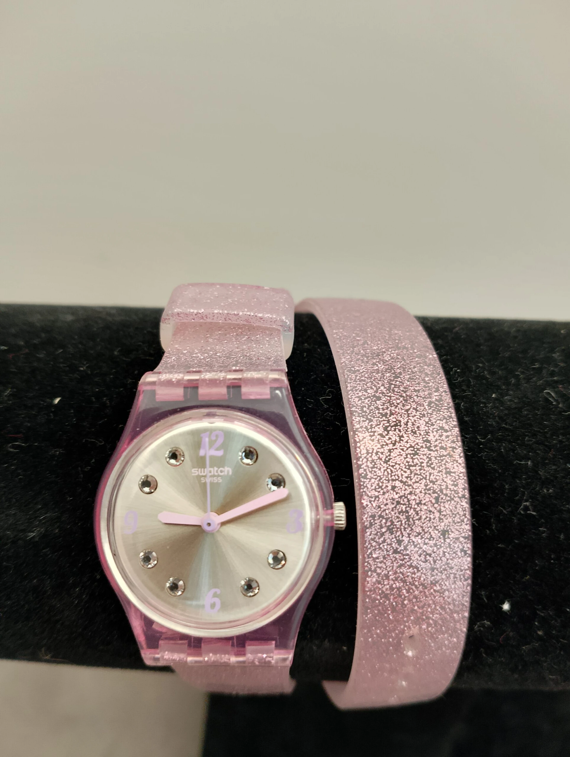 Orologio Swatch rosa con brillantini,cinturino doppio giro