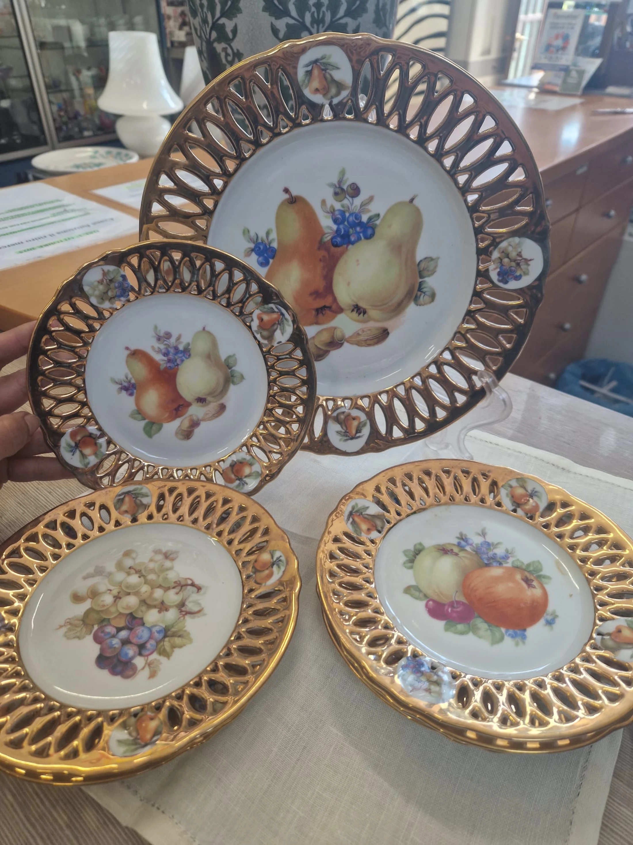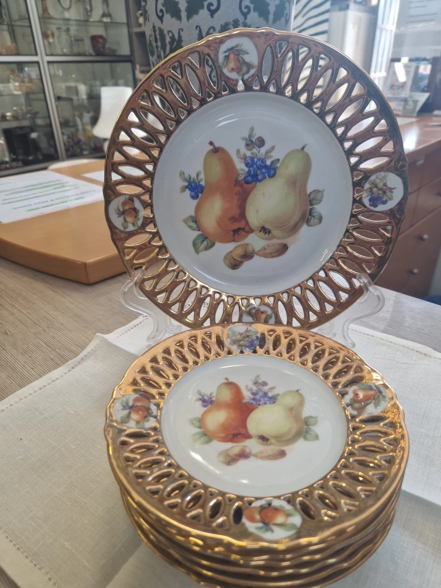 Set di piatti vintage con bordo dorato per torta composto da un piatto grande + piattini